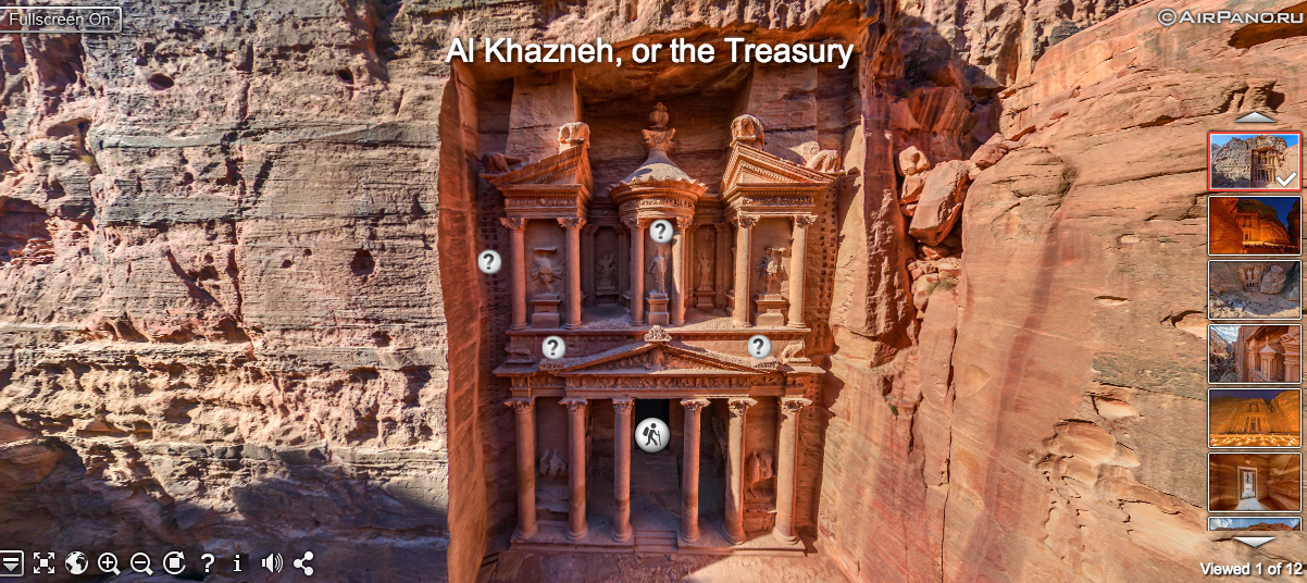 Much of the AirPano imagery now includes interactive pinmarks that you can click to learn more about the places you're seeing in the AirPano imagery. For example, if you visit theAirPano imagery of Petra you can click the pinmarks to learn about the construction of Petra and the significance of various carvings seen throughout the virtual tour.